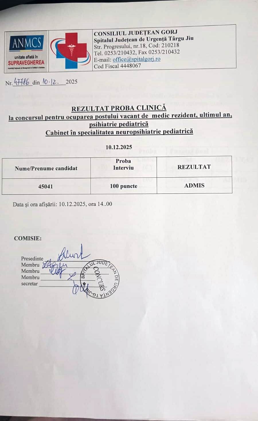 Home Carieră - Anunțuri angajări Rezultate proba clinică concurs ocupare post medic rezident psihiatrie infantilă